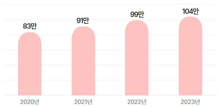 건강보험심사평가원 자료에 따르면, 최근 5년 동안 한 해 평균 약 92만 명이 우울증으로 병원을 찾았다고 해요. 코로나19 유행 직전인 2019년에는 약 80만 명이었지만, 이후 환자 수가 꾸준히 증가하여 2023년에는 처음으로 100만 명을 넘어서 약 104만 명을 기록했답니다.