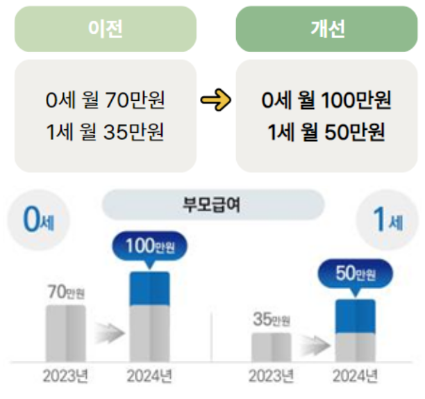 - 부모급여 인상: 영아기 돌봄을 더 두텁게 지원하기 위해 부모급여 지원이 확대되었습니다.
