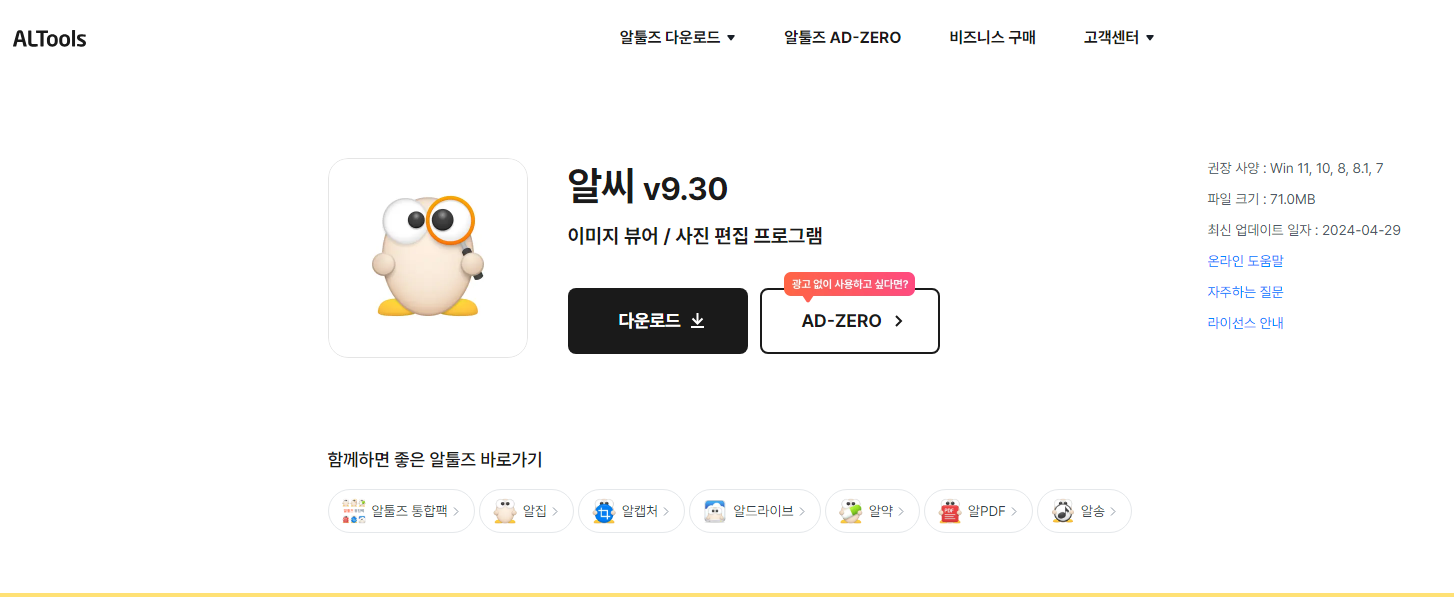 네이버에서 알씨를 검색하면 알툴즈가 나옵니다.