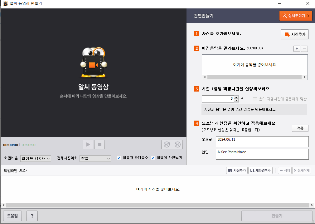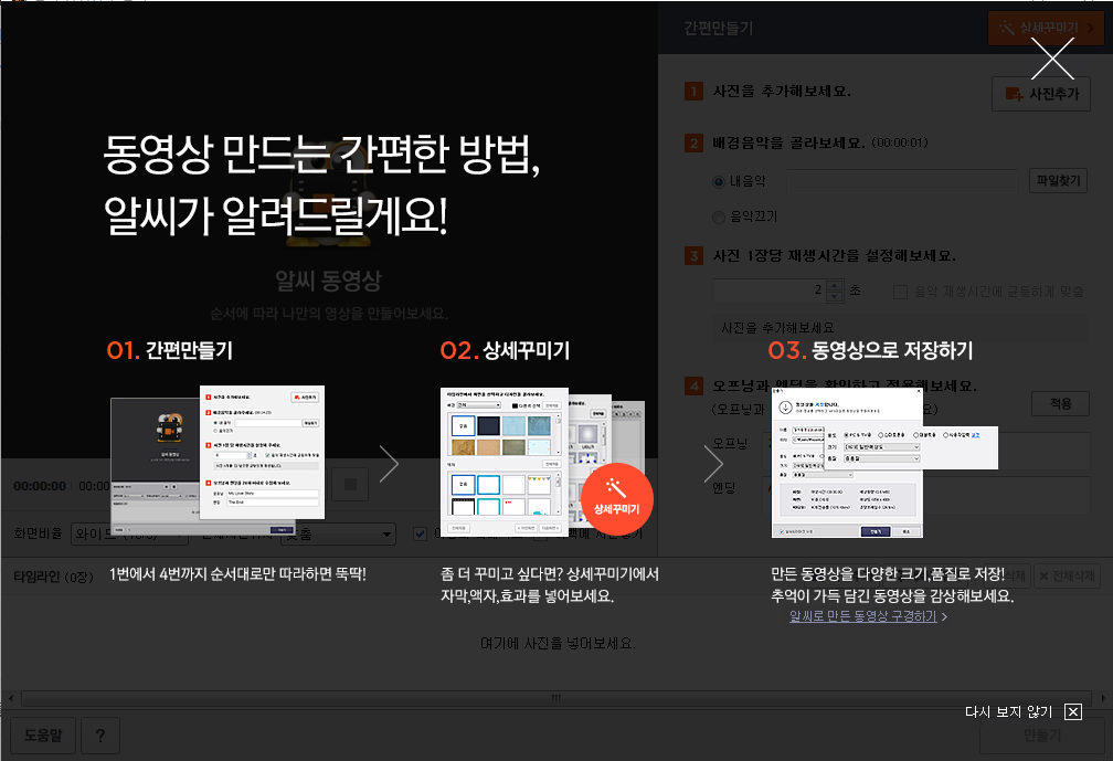 1-4번을 순서대로 따라하면 동영상이 쉽게 만들어집니다.
