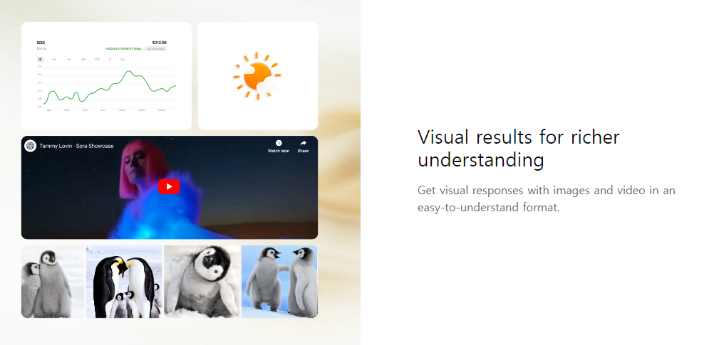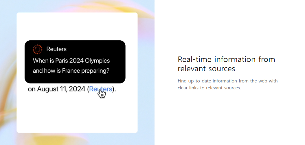 - 실시간 정보 제공: 서치GPT는 웹에서 실시간으로 최신 정보를 수집하여 사용자의 질문에 신속하고 정확하게 답변합니다. 이를 통해 최신 뉴스나 시시각각 변동하는 데이터에 대한 신속한 접근이 가능합니다.