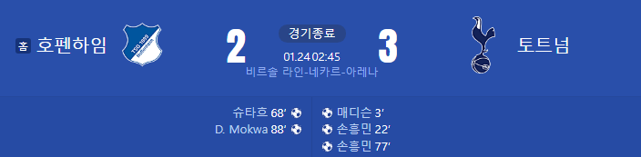 경기 막판에는 호펜하임이 다시 한번 추격골을 넣었지만, 토트넘은 남은 시간을 효과적으로 관리하며 최종적으로 3-2 승리를 거두며 승점 3점을 확정지었습니다.