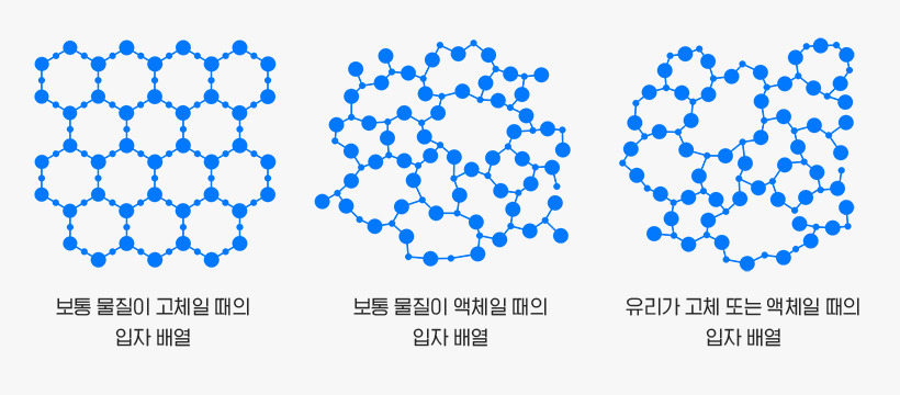 - 이 때문에 유리는 고체처럼 보이지만, 엄밀히 따지면 결정 구조가 없는 물질입니다.