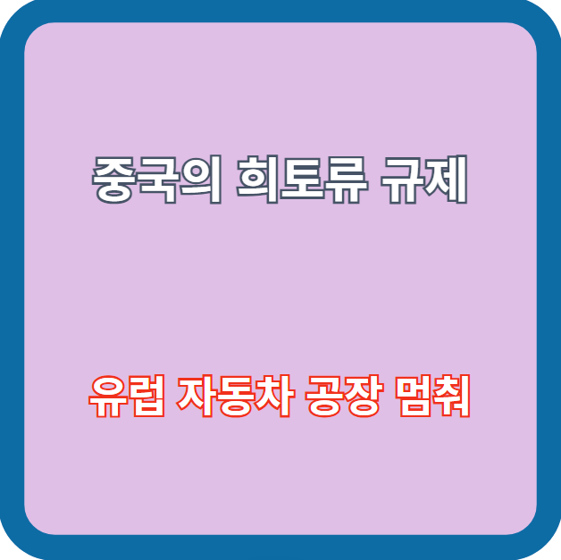 최근 중국의 희토류 수출 규제로 인해 유럽 자동차 부품 공급업체 공장들이 가동을 중단했습니다. 그 영향은 전 세계 자동차 산업에 깊은 그림자를 드리우고 있습니다. 중국이 전 세계 희토류 공급을 장악한 상황에서 발생한 이번 위기는 전기차 생산과 기타 고기능성 산업에 큰 영향을 미치고 있습니다. 그럼, 왜 이런 일이 벌어졌고, 앞으로 어떤 영향이 있을까요? 자세히 살펴보겠습니다.