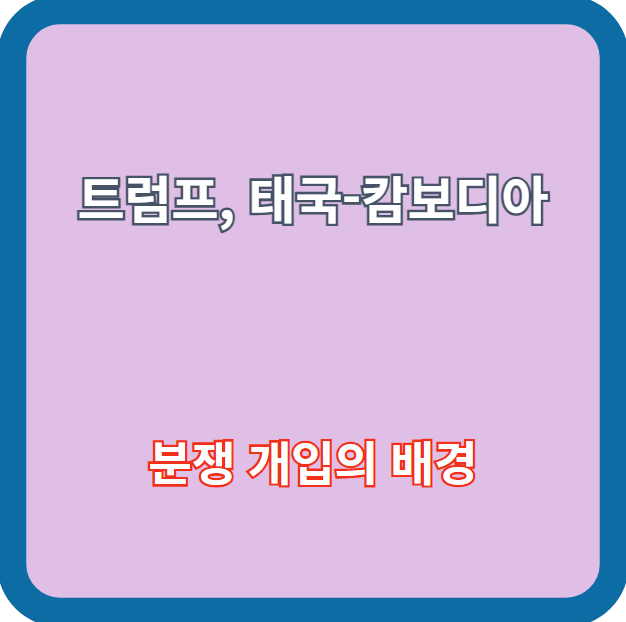 이번 글에서는 태국-캄보디아 분쟁의 배경, 트럼프 중재의 방식과 외교적 의미, 그리고 향후 정세를 전망해봅니다.