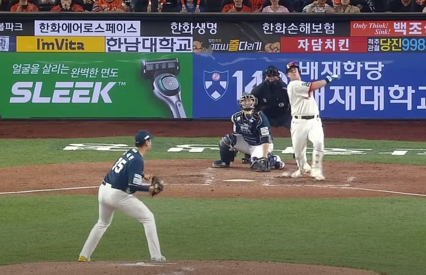 또한, 노시환은 대전 신구장에서 개인 첫 홈런(시즌 6호)을 기록하며 팬들을 열광시켰습니다. 4회말 NC 투수 김태현을 상대로 8구째 승부 끝에 몸쪽 높은 포크볼을 받아쳐 비거리 130m 솔로포를 날렸는데요. 이 홈런은 노시환에게도, 한화 팬들에게도 특별한 순간이었습니다.