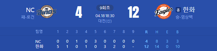 18일 대전 한화생명이글스파크에서 열린 NC 다이노스와의 경기에서 한화는 12-4로 대승을 거두었습니다. 이번 승리의 주역은 선발투수 엄상백이었는데요. 그는 5이닝 4실점으로 비록 완벽하지는 않았지만, 팀의 승리를 이끌며 이적 후 첫 승을 신고했습니다.