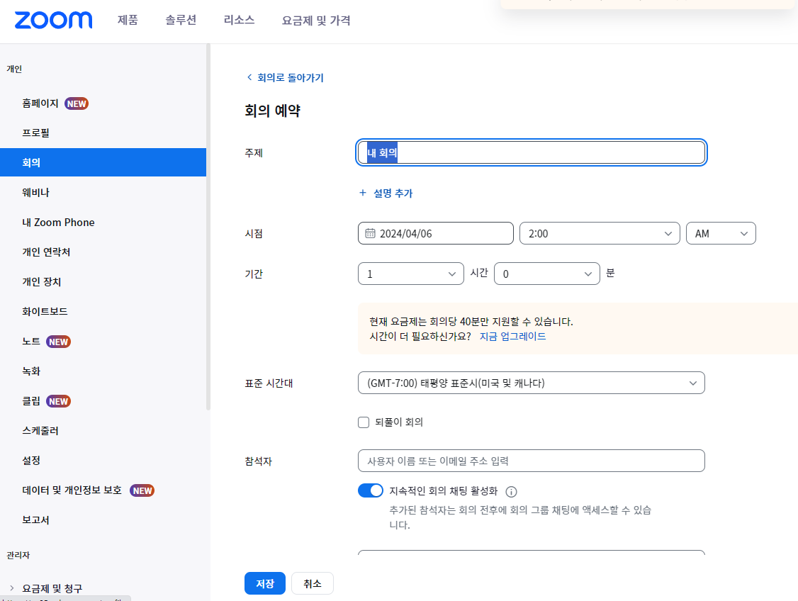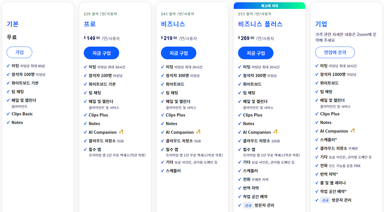 비디오 회의 플랫폼 ZOOM 요금제