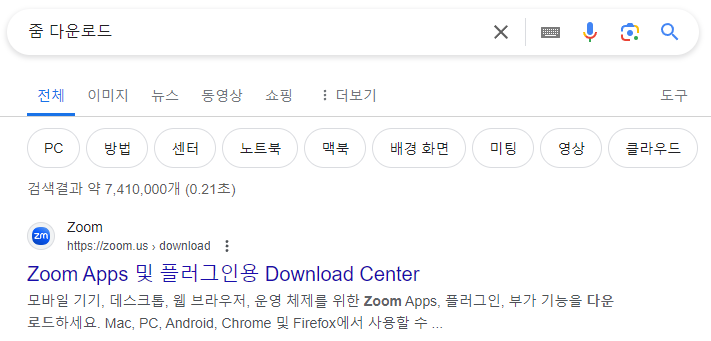 구글에서 zoom을 검색할 때