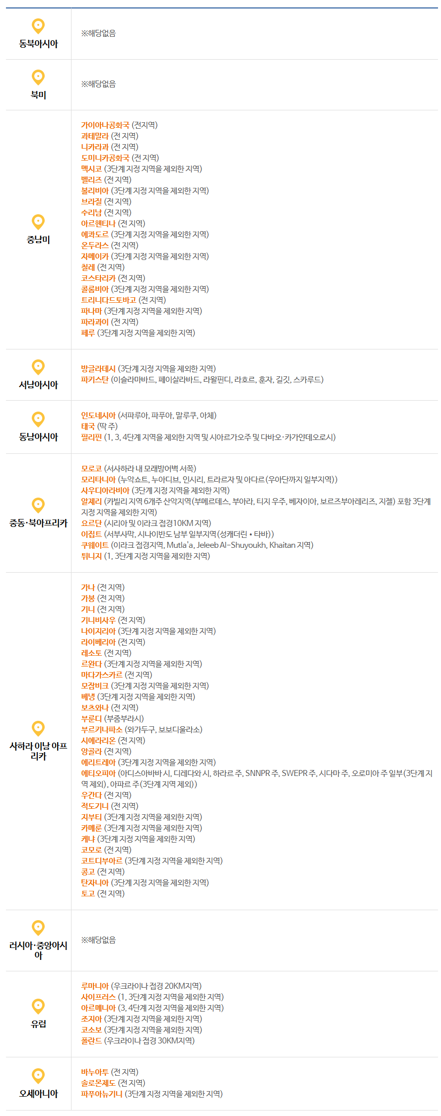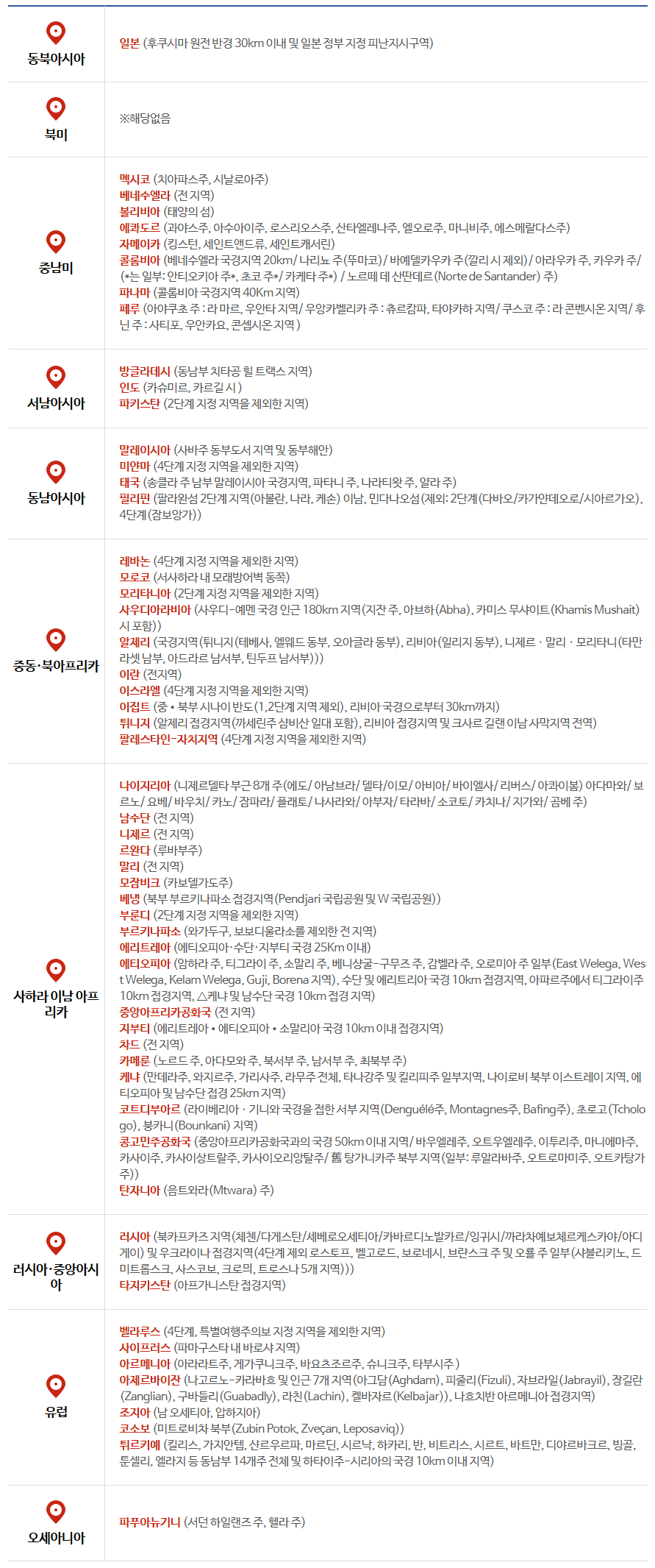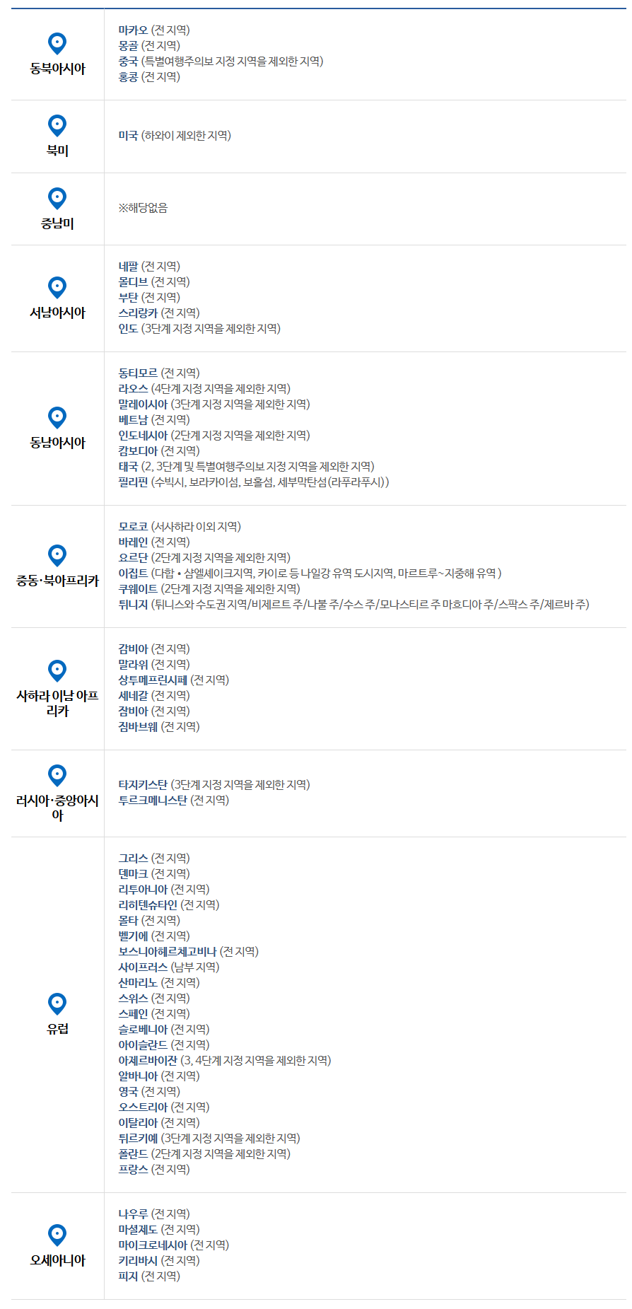 지역별 주의 국가들