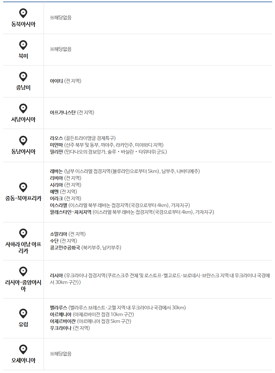 - 여행경보 3~4단계 혼합 적용