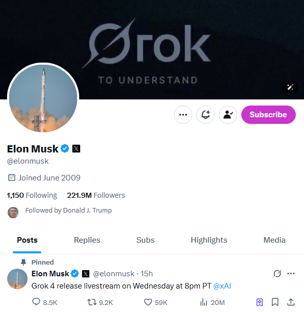 일론 머스크는 지난 7월 8일, 자신의 SNS 플랫폼 X(구 트위터)를 통해 그록 4의 공식 출시 일정을 공개했습니다.