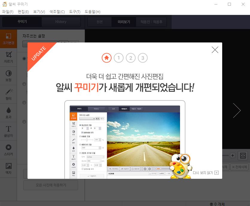 꾸미기/동영상 만들기로 이미지를 활용한 다양한 편집이 가능하며, 캐드뷰어로 일반 이미지 파일 뿐만 아니라 캐드 2D/3D 확장자 뷰잉도 지원합니다.